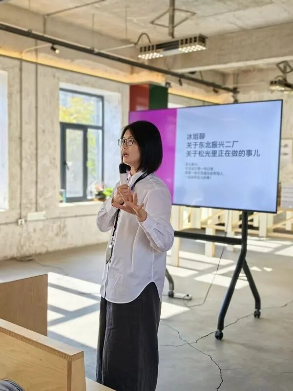 以东北虎为原型的贴纸、以中华巴洛克为创意的雨伞、以“哈尔滨味道”为素材的明信片……在松光里这个空间,处处都是东北元素。趁着“尔滨”火爆出圈,于冰举办了一场“东北振兴,我会出手”文化艺术策展,巨型海报悬挂于松光里的小院内,吸引了无数人前去打卡。