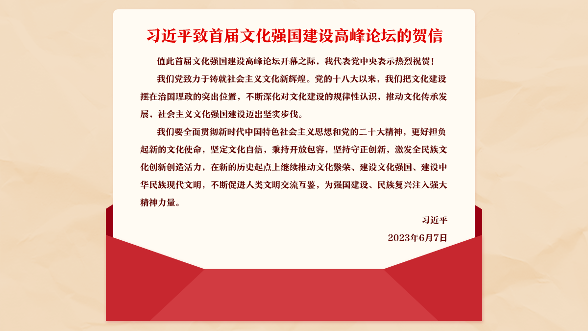 習(xí)近平致信祝賀首屆文化強(qiáng)國建設(shè)高峰論壇開幕強(qiáng)調(diào)