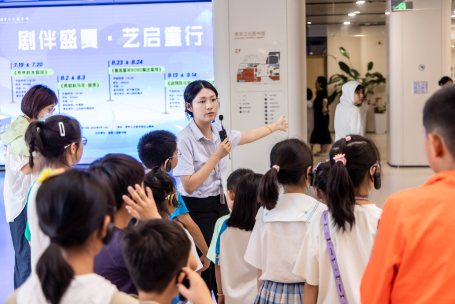 葛塘街道实践所带领辖区青少年走进南京江北图书馆开展“走进新区·见证未来”文明实践项目。江北新区葛塘街道供图