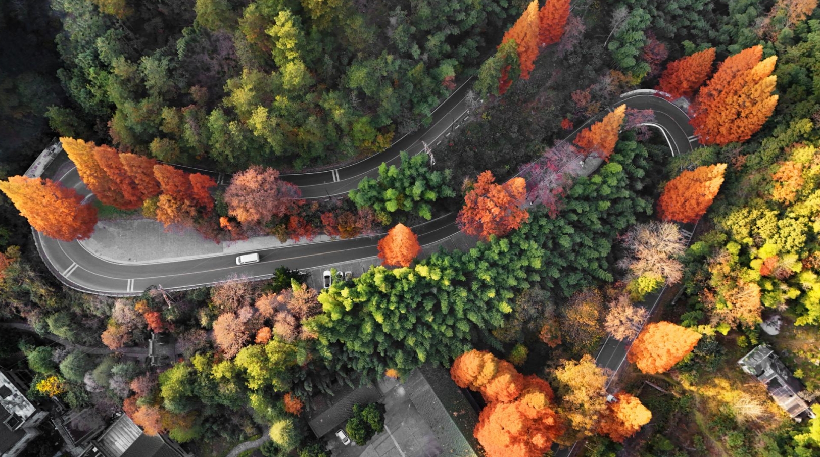 盘山公路上的秀美风光。