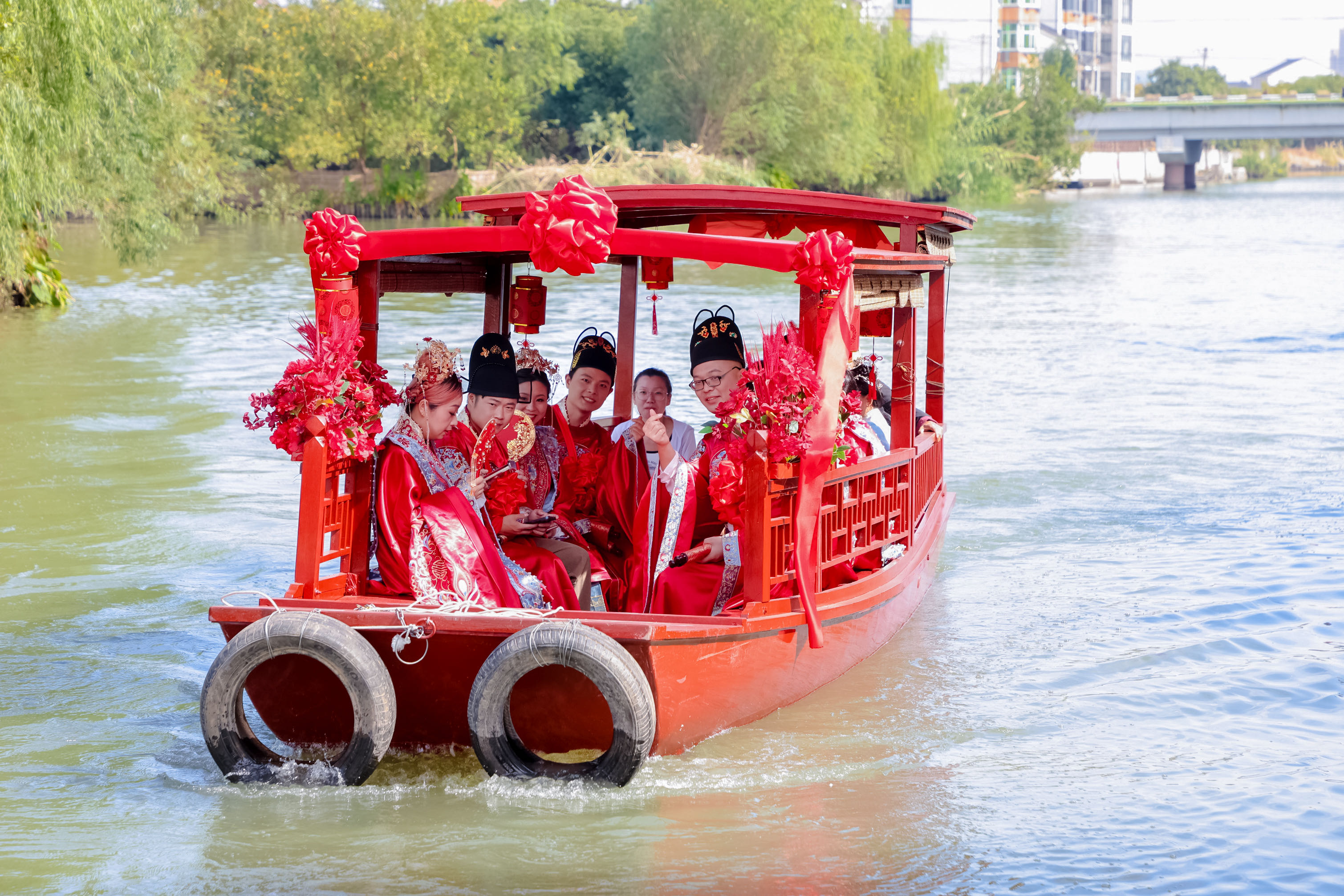 塘栖镇举办水乡集体婚礼,推进移风易俗。
