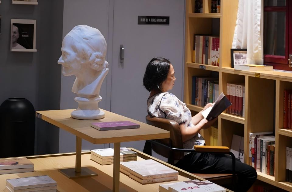 2025年9月9日夜晚,一位读者正在安庆前言后记书店劝业场店看书。安庆市新闻传媒中心汪飞龙 摄