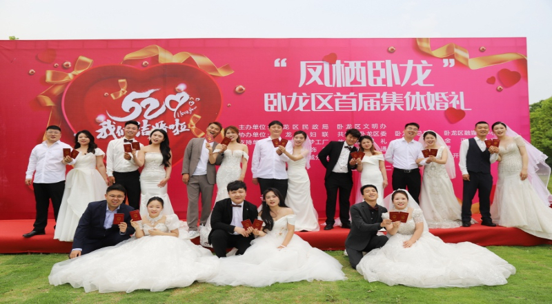 南阳市卧龙区举办集体婚礼,倡导移风易俗、喜事新办。南阳市文明办 供图