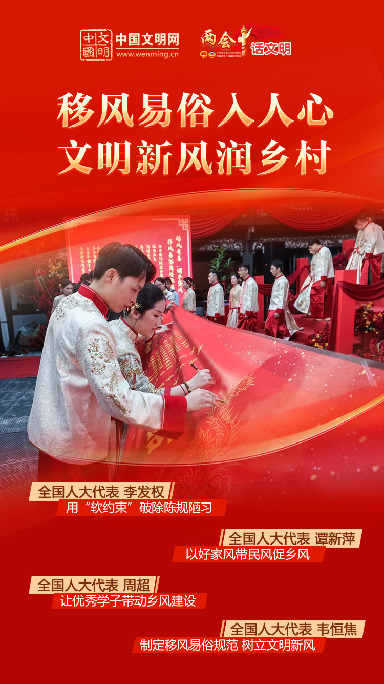 习近平总书记强调,要广泛践行社会主义核心价值观,持续深化城乡精神文明建设,抓好农村移风易俗,让现代文明理念在乡村深深扎根。如何加强农村精神文明建设,推进移风易俗,积极培育时代新风新貌,一起听听代表委员的心声。